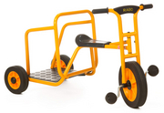 Ein Dreirad, das soziales, körperlich betontes Spielen ermöglicht, da es von zwei Kindern gleichzeitig genutzt werden kann und verschiedenartiges Spiel bietet wie Asterix zu sein, Pferderennen oder Bus spielen oder einfach zum Fahren und Spaßhaben genutzt werden kann.